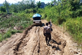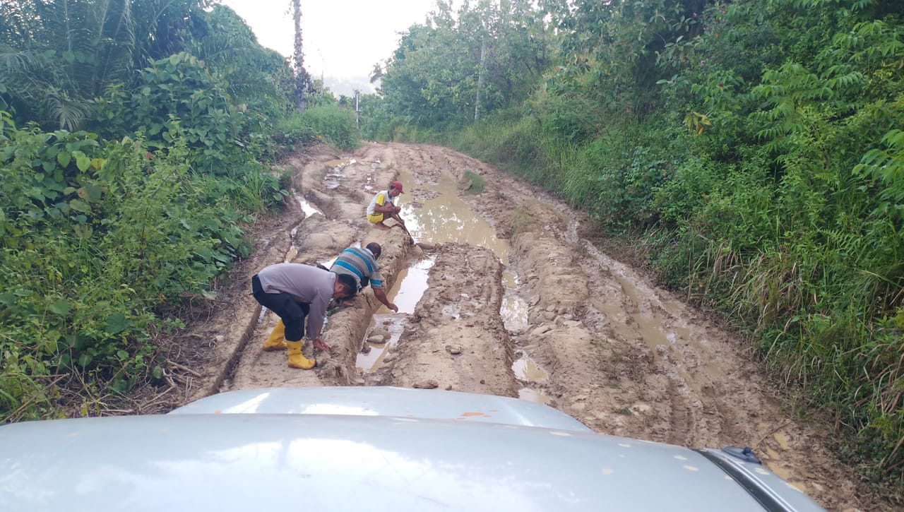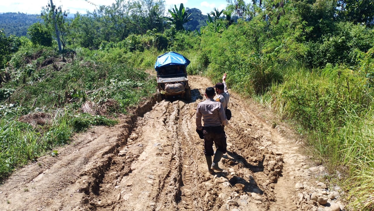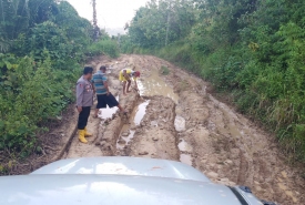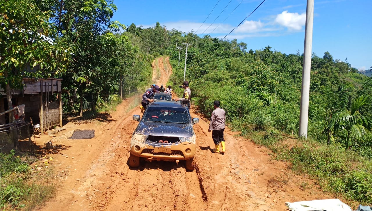 "Jalannya berlumpur, rusak berat, sampai di dusun tidak ada sinyal hp," kata Kapolsek.