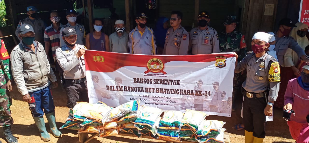Lensabengkulu.com - HUT ke-74 Bhayangkara tahun 2020 ini, Polri diseluruh jajaran mengadakan berbagai kegiatan kemanusiaan. Yang menjadi prioritas bersama dalam rangkaian HUT kali ini adalah bakti sosial serentak diseluruh jajaran. Mulai dari Mabes, Polda, Polres dan Polsek.