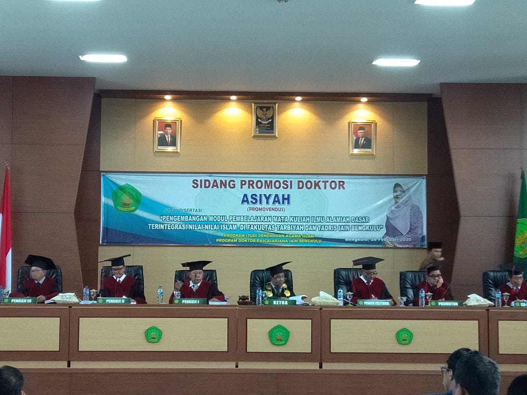 Lensabengkulu.com - Program Pascasarjana IAIN Bengkulu menyelenggarakan sidang akhir gelar Doktor Program Studi Pendidikan Agama Islam, Jumat (28/02/2020), di Ruang Sidang Promosi Doktor IAIN Bengkulu.