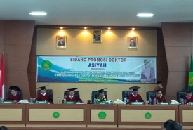 Dalam perdana sidang promosi Doktor ini diketua oleh Prof Sirajudin, Wakil Ketua Dr Rohimin M Ag, Penguji 1 Dr Zulkarnain Dali M Pd, Penguji 2 Dr Samsudin M Pd, Penguji 3 Dr Al Fauzan M Ag, Penguji 4 Prof Dr Rahmad Nusa Songko M Pd, Penguji Eksternal Prof Dr Irwan Abdulah, Promotor Prof Dr H Abdulah Aidi, Co Promotor Dr Zubaidi M Ag, M Pd, Sekertaris Dr Qolby Hairi M Pd.