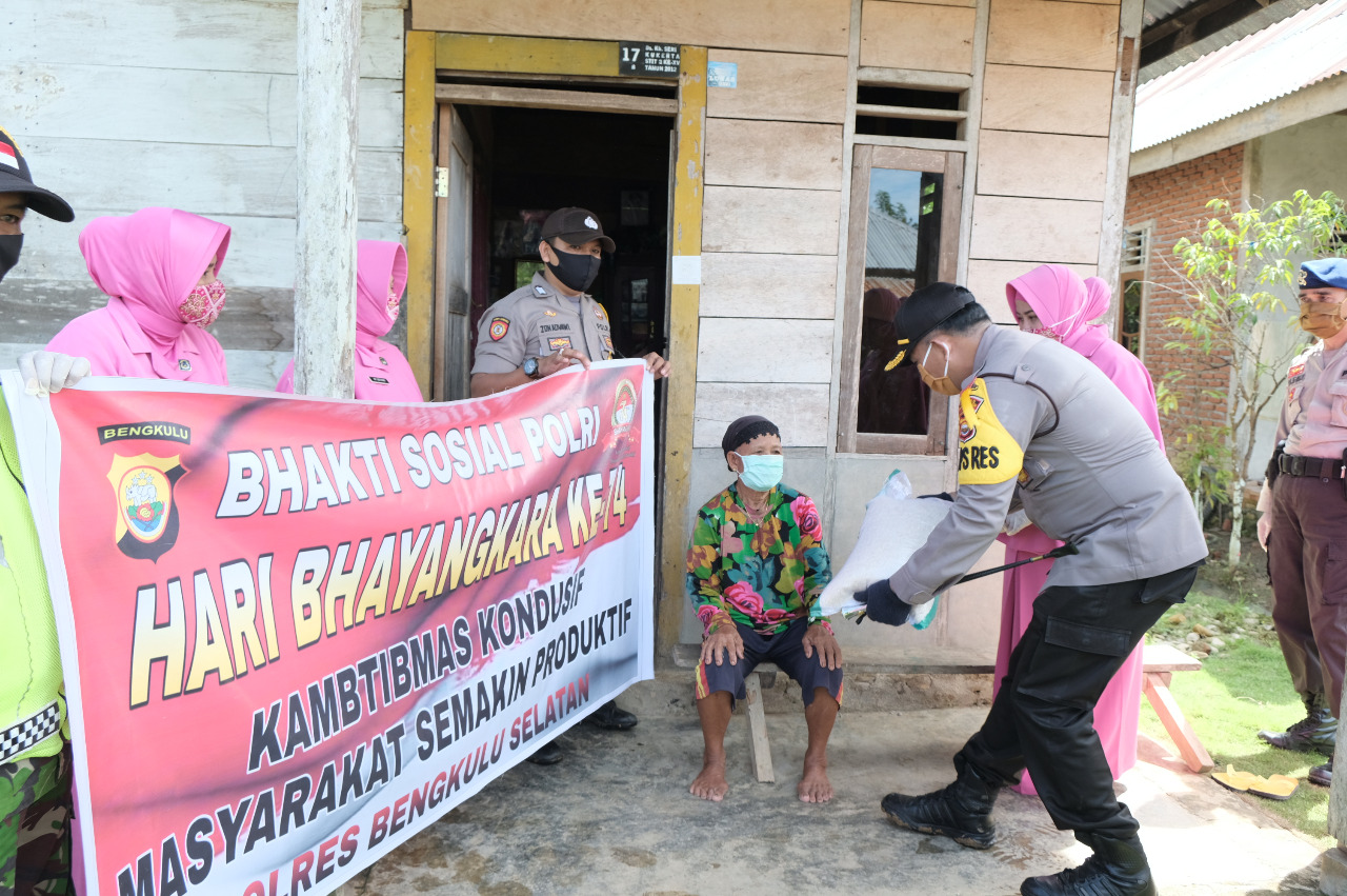 Kegiatan tersebut selain dalam rangka menyambut HUT Bhayangkara, juga dalam rangka membantu masyarakat yang terdampak Covid-19.