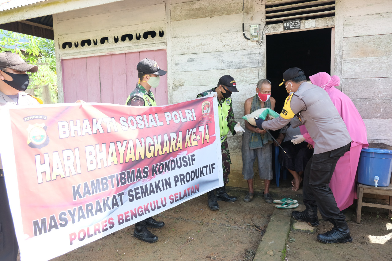 Dalam Rangka Sambut HUT Bhayangkara, Kapolres Bengkulu Selatan Salurkan Bantuan Beras
